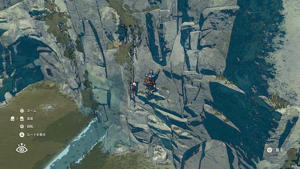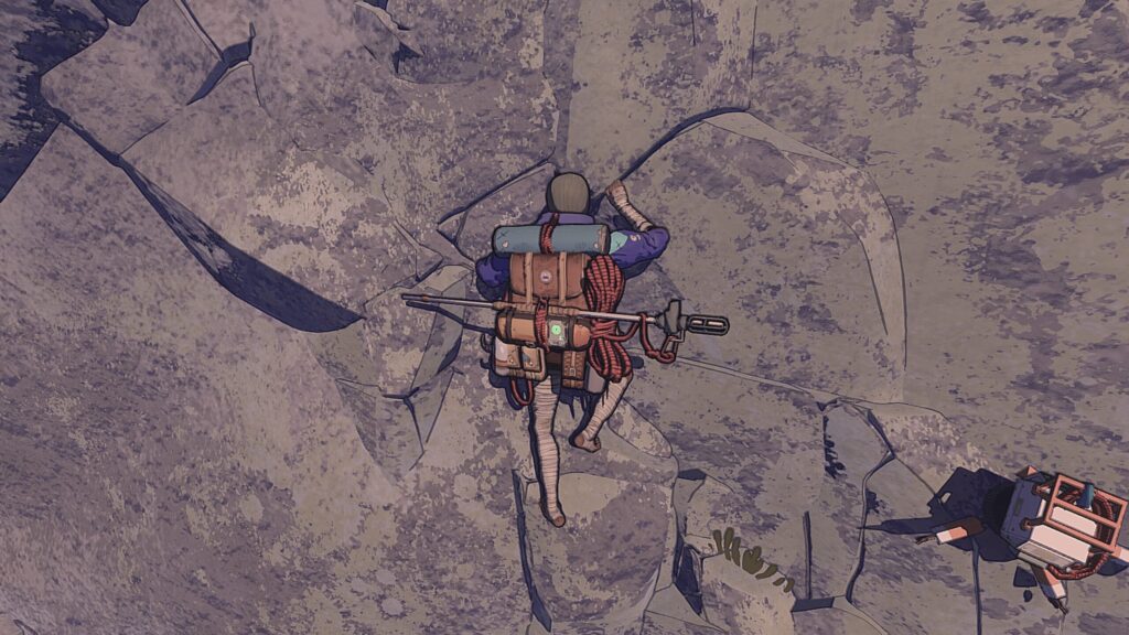 またクライミング中はスタミナゲージが表示されません。表示されないだけで確実に減ってます。これは没入感を増すために敢えて不便な作りにしているのだと思います。