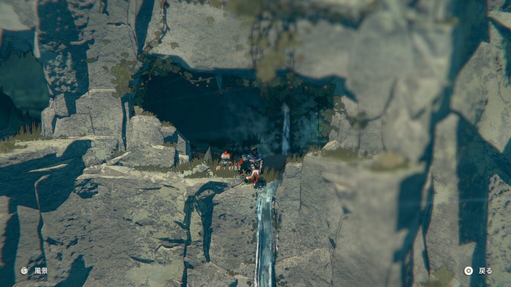 定期的に、休憩ポイント兼セーブポイントでテントを張って休息できて、そこで素材を使った料理を作ることもできます。料理でリュック内のスペースを節約できたりするので、ここもちゃんと意味があるのが良い。