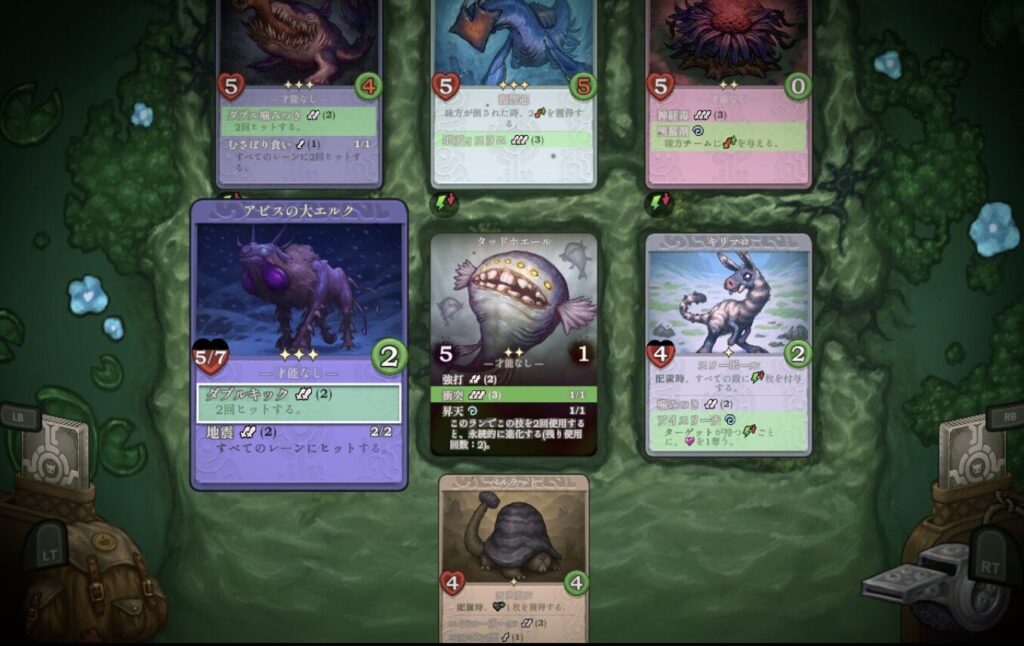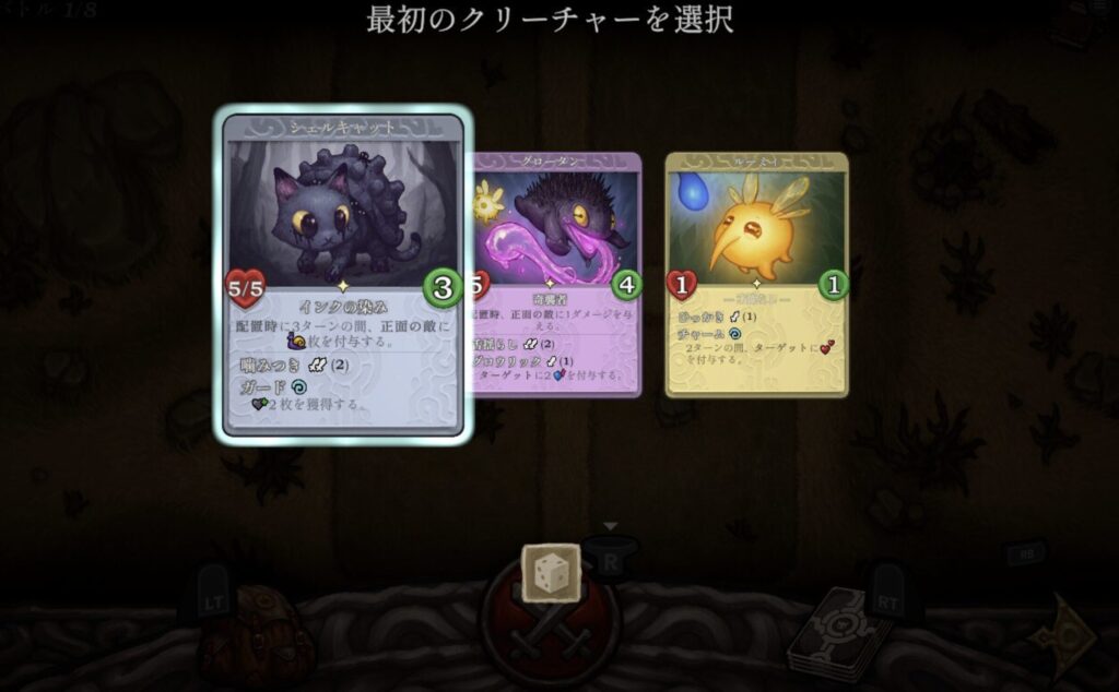 ゲーム開始時、初期デッキはクリーチャー5体でスタート。