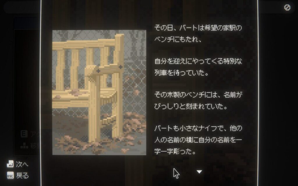 もう過ぎ去ってしまったことは変えられない。プレイヤーができるのは、過去に起きた出来事を、AIハイマーの記録から静かに追うことだけです。