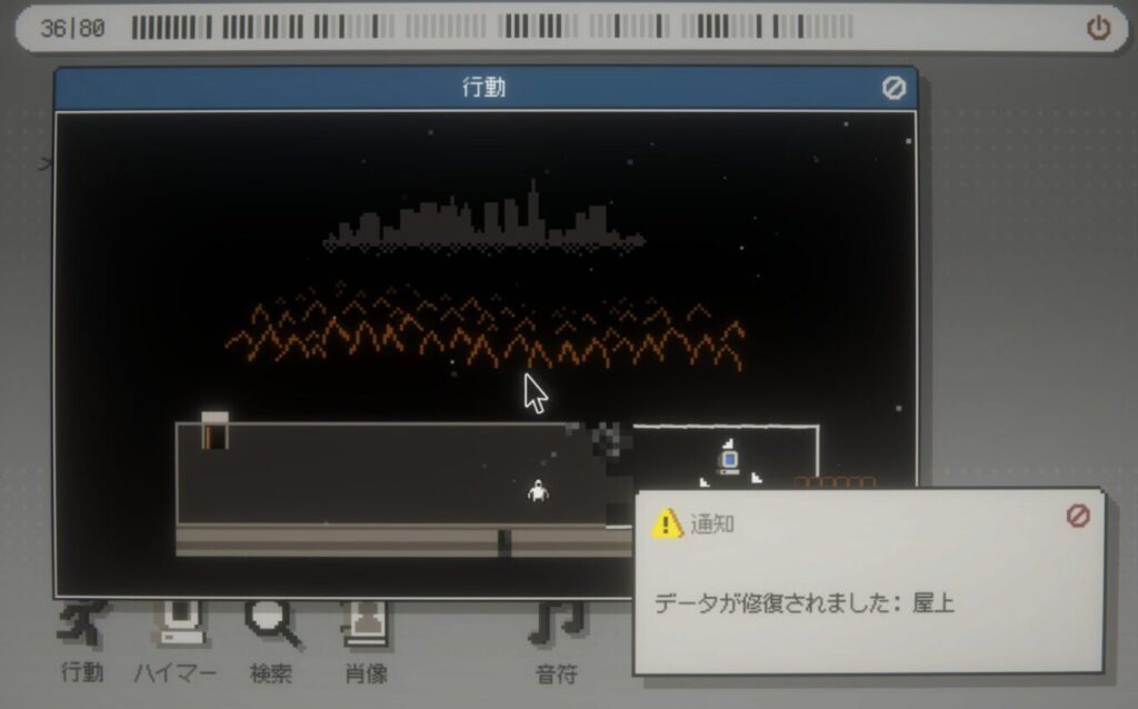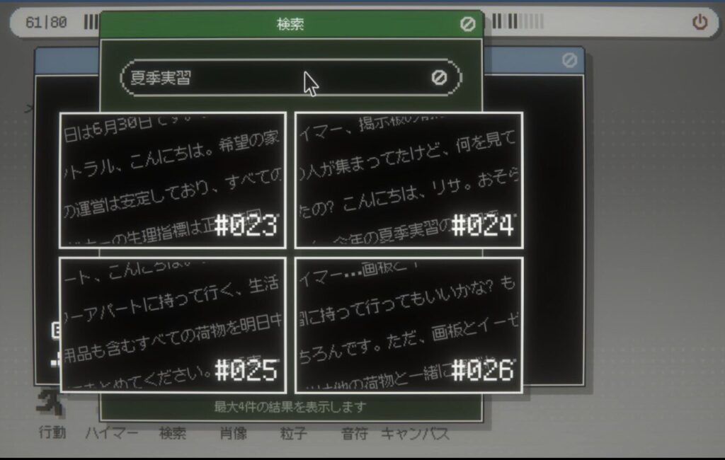 進行上も、道が壊れている箇所を復旧するために「一定数の検索ワードが開示されている状態」が必要なので、ストーリーを追うだけではなく、ある程度はログを埋める必要がある作りになっています。